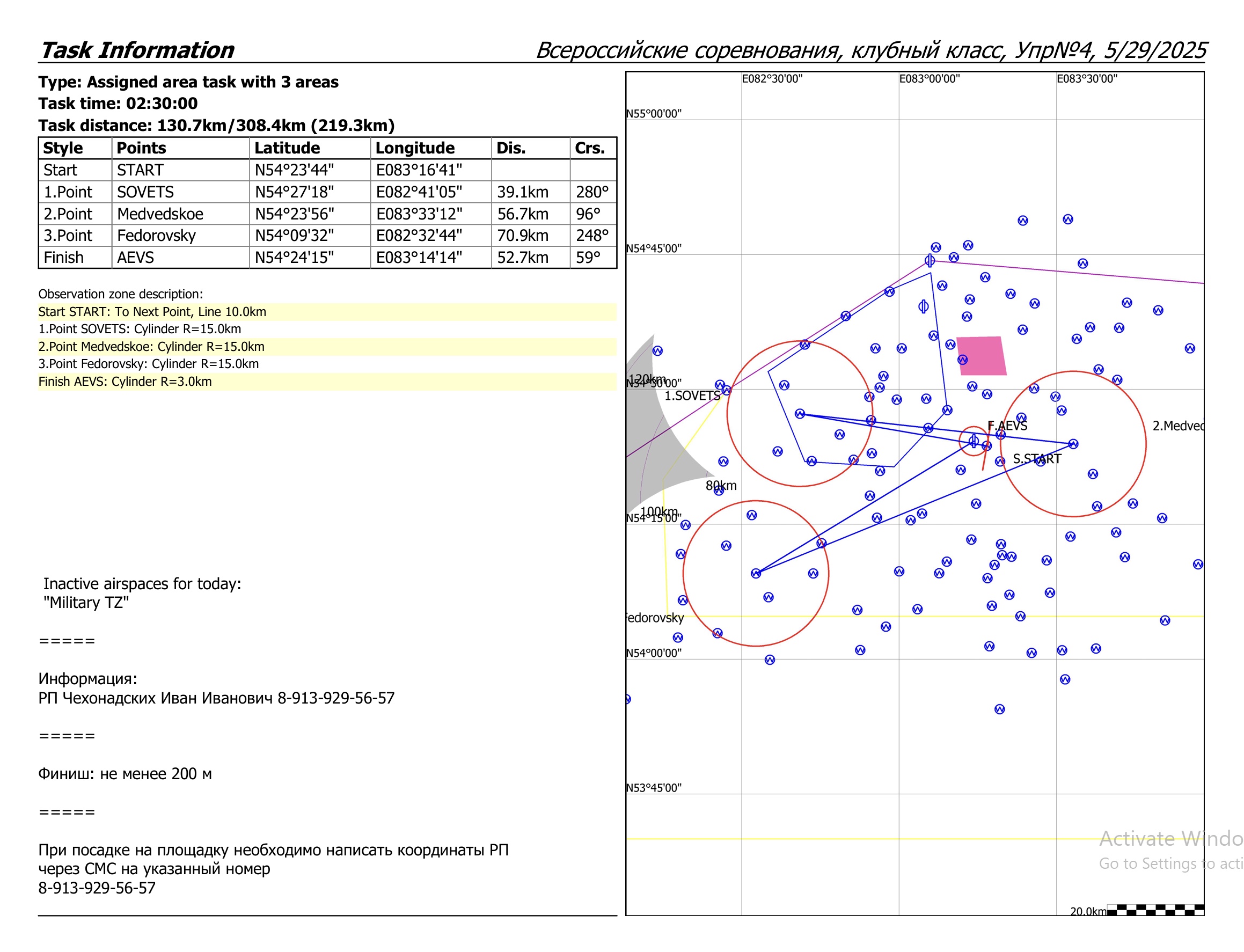 1.Точка: SOVETS (R=15 км, D=38,94 км)